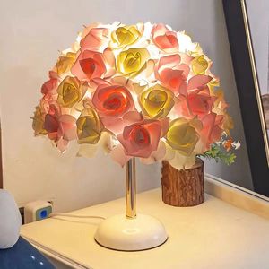 ピンクと白のバラのランプシェード + 裂けた氷のセラミックベース
