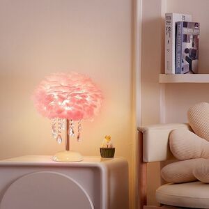 セラミックフェザーランプ女の子の寝室のテーブルランプベッドサイドランプライト高級ハイエンド装飾ロマンチックな暖かいギフトフェザーテーブルランプ
