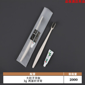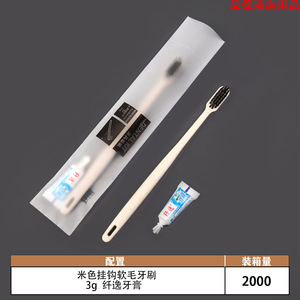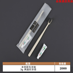 ベージュのストローの柔らかい毛の歯ブラシ + 両面針歯磨き粉 3 グラム
