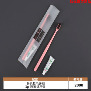 ピンクストローの柔らかい毛の歯ブラシ + 両面針歯磨き粉 3g