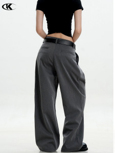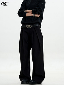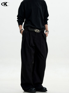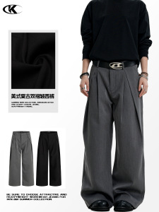 11KN アメリカンオールドマネースタイルの男性と女性用のドレープパンツ、エレガントなプリーツ、ゆったりとした立体的なトレンディなスリムワイドレッグカジュアルパンツ