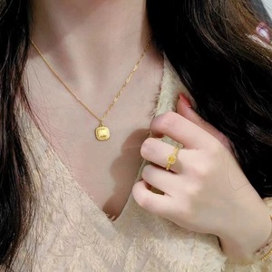 流金岁月小方糖吊坠项链金店同款沙金仿黄金锁骨链戒指女久不掉色