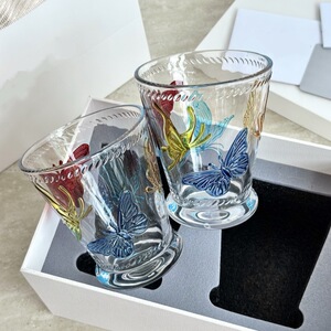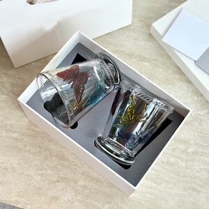 浮雕彩绘玻璃杯高透亮水晶杯手绘花纹耐高温咖啡杯欧式轻奢礼盒装