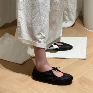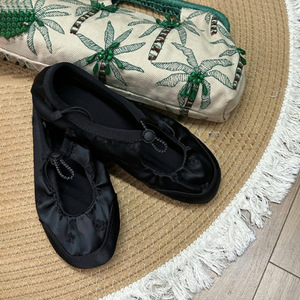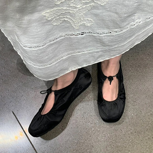 シープスキンバージョン~レトロサテンゴムバンドメリージェーンシューズレディース本革浅口フラットバレエシューズ