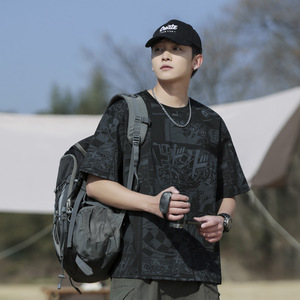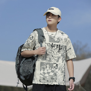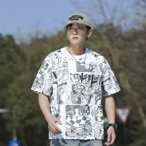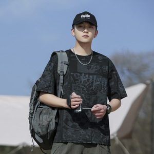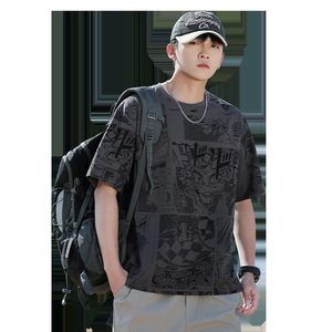 夏新作グラフィティメンズ半袖Tシャツルーズカジュアルトップスメンズ楽しいプリントトレンディブランド抗菌デザイン