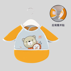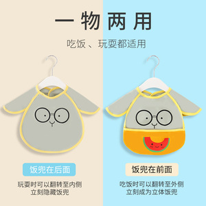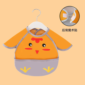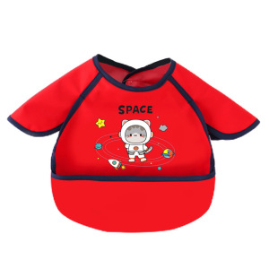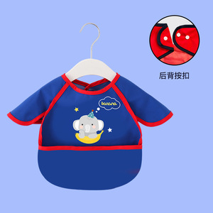 夏用の薄いベビーポータブルよだれかけスモック、子供用ノースリーブ食事ポケット、男の子と女の子用の防水性と防汚性の逆着用服