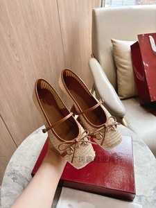 25夏新作Gファミリーバレエシューズホースビットショ織り豚鼻リボンフラット大きいサイズシューズ