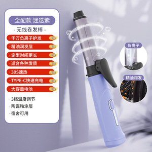 クロスボーダーミニポータブル韓国風大型ロールワイヤレス充電式ヘアアイロン、髪を傷つけずに長持ちするスタイリング、大きなウェーブヘアアイロン