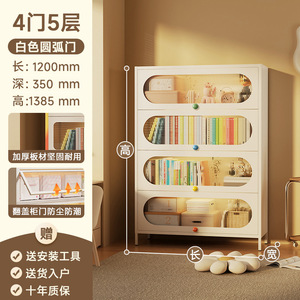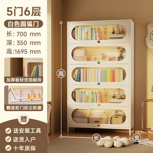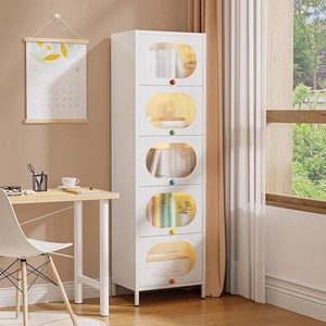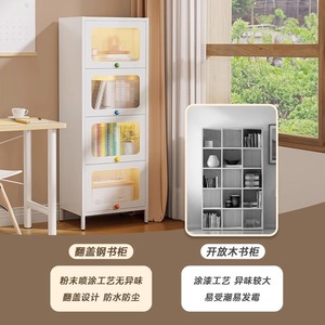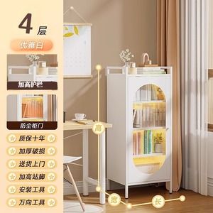钢制书架带门彩色把手防尘储物柜客厅夹缝书柜书房铁艺置物收纳架