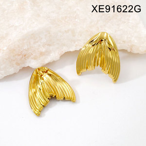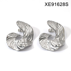 跨境钛钢个性轻奢耳环女欧美时尚百搭高级感首饰树叶贸易耳饰批发