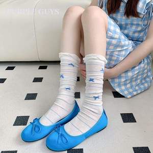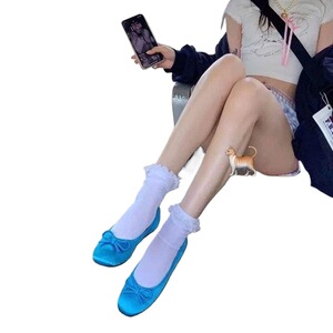 ブルーバレエスタイルフラットシューズ女性のための 2025 春の新作甘いサテンリボンラウンドトゥフラットシューズ