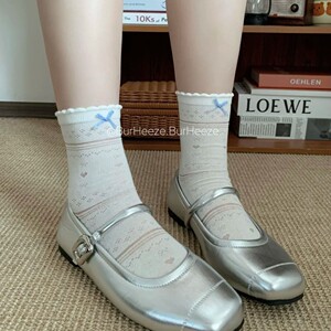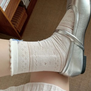 フェアアイルスイートクリーム韓国風春夏リボンラブ中空ボーンレス超薄型通気性パイルミッドカーフソックス