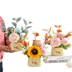 花盆可放假花仿真花葵插花小盆栽塑料花束客厅装饰品餐桌绿植摆件