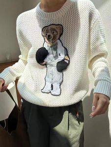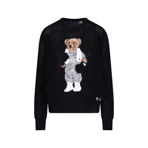 拉夫劳伦polo小熊刺绣镂空圆领针织衫女宽松显瘦百搭长袖毛衣上衣