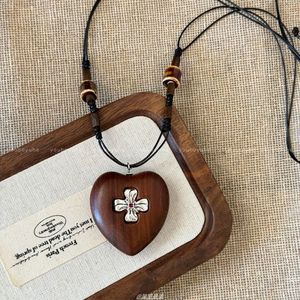 高级感木质爱心串珠项链女轻奢小众设计感陶瓷毛衣链甜酷辣妹配饰
