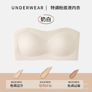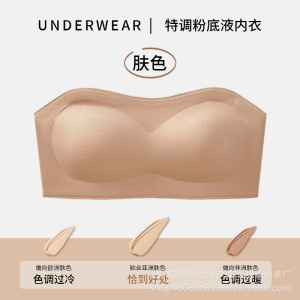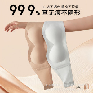 女性用夏用ストラップレス下着、滑り止めチューブトップ、シームレスアイスシルクワンピース胸ラップ、露出防止、小さな胸プッシュアップ下着