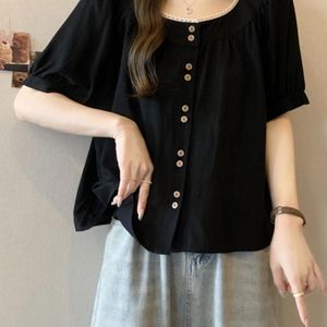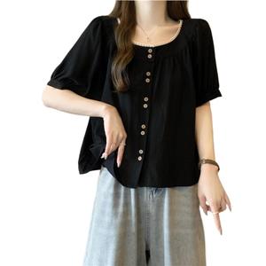 大码女装遮肚子正肩显瘦短袖衬衫女夏季微胖mm百搭宽松娃娃衫上衣
