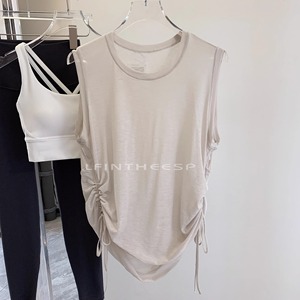 人気のわずかに透ける巾着ノースリーブスポーツベストランニングトレーニングカバーアップゆったりとした肉感薄いフィットネスヨガトップ