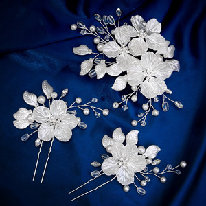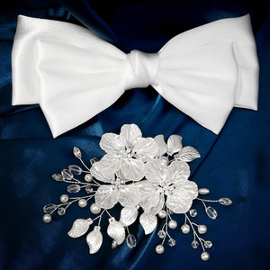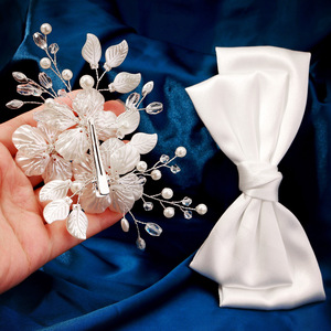 フレンチエレガントサテンリボンヘアピンアクリルフラワーパール手作りヘアピン後頭部クリップカモノハシクリップ