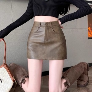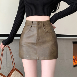 口袋设计皮裙半身裙女秋季2025新款包臀漆皮短裙PU皮裙高腰A字裙