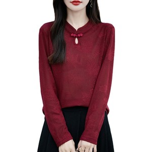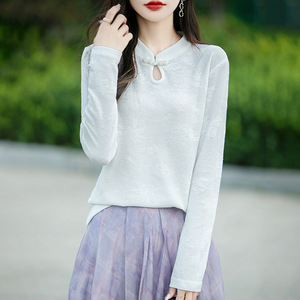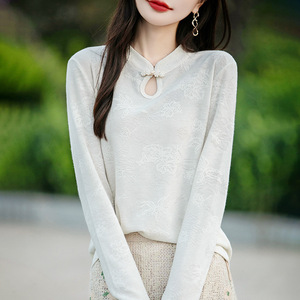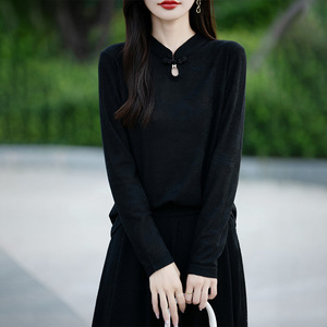 2025春秋改良旗袍领针织衫半高领毛衣打底衫香妃新中式国风上衣