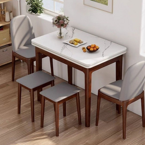 岩板折叠餐桌家用小户型实木伸缩现代餐桌椅简约桌子饭桌组合批发