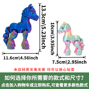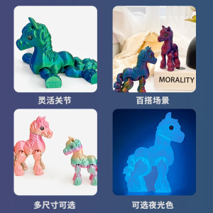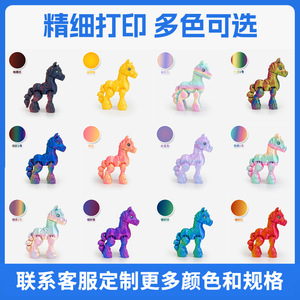 跨境3D打印小马生肖马年礼物仿真动物关节可动玩具摆摊夜市批发