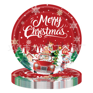 新しいクリスマスカーニバルナイトテーマパーティー使い捨て紙テーブルクロス紙皿食器セットクロスボーダークリスマスホットセール