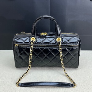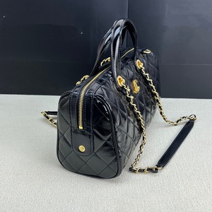 新しい第一層オイルワックス牛革ボウリングバッグボストンバッグハイエンド菱形チェーンバッグ小さなフレグランスハンドバッグ