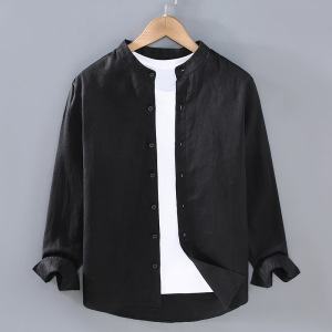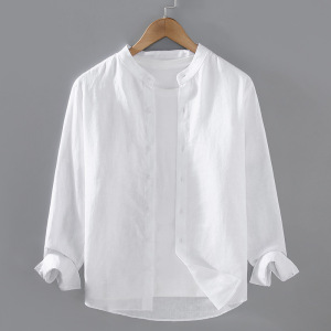 9606 ピュアリネンメンズ長袖シャツ春夏国民風スタンドカラーシャツ大きいサイズゆったり万能トレンド服