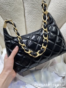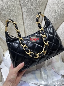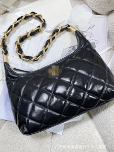 オリジナルレザースモールフレグランススタイル2025新しいオイルワックスレザーホーボー脇の下レトロ太いチェーン菱形チェーンショルダーバッグ女性用