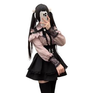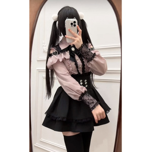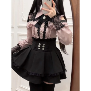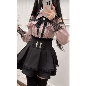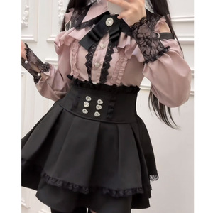 夏カレッジスタイル日本製オフショルダーレースシャツトップ+ウエストレース量産スカートスーツ