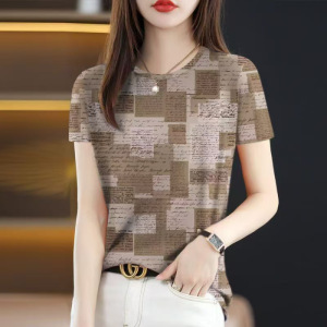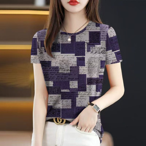 时尚女士T恤短袖2025夏季新款圆领套头洋气复古宽松上衣爆款潮流