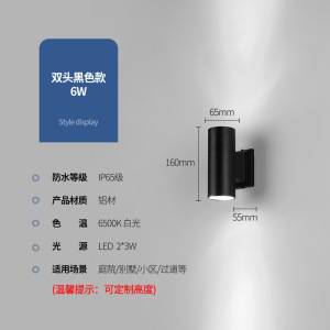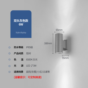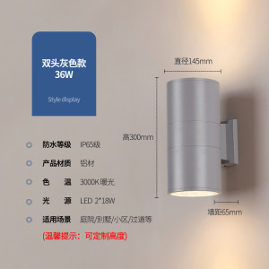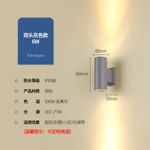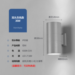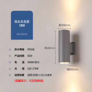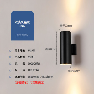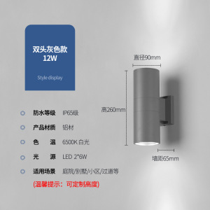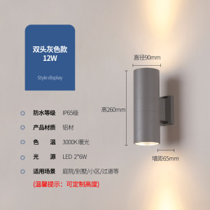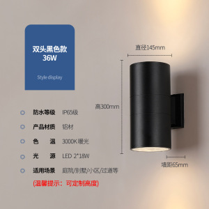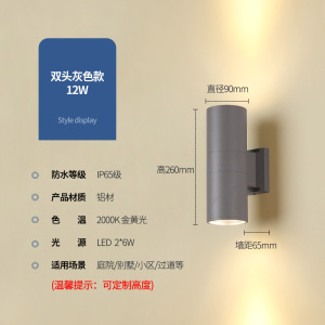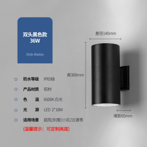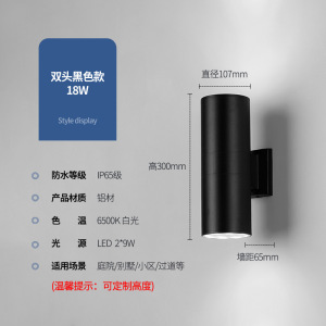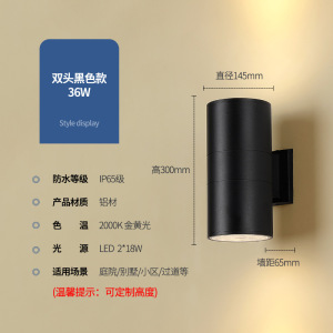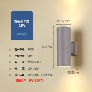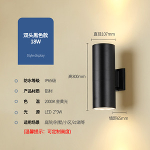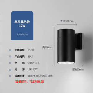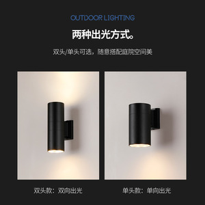 LED12W防水户外壁灯双头单头圆形外墙上下射灯庭院室外柱子围墙灯