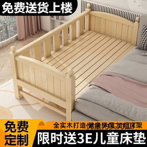 实木婴儿拼接床加宽带护栏男孩女孩单人床边床儿童拼接大床