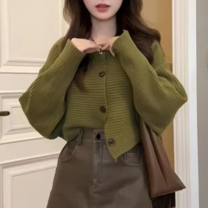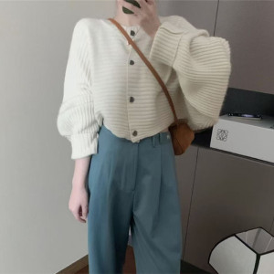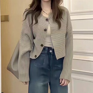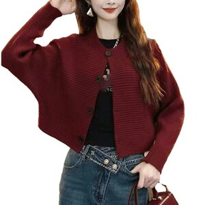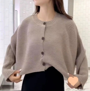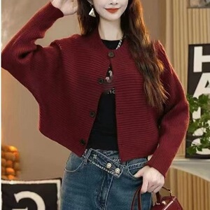女性用ニットカーディガン、新しいスタイル、レイジースタイル、ラウンドネック、ルーズバットスリーブ、女性用多用途カジュアル秋冬ジャケットトップ