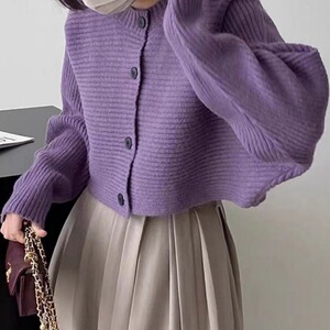 パープルのニットカーディガン