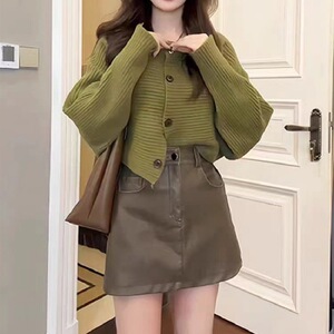 グリーンのニットカーディガン