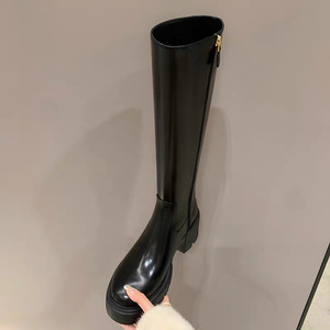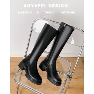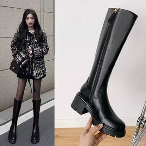 香港2025春秋显瘦粗高跟骑士靴中高筒靴法式长腿靴子百搭长筒靴女