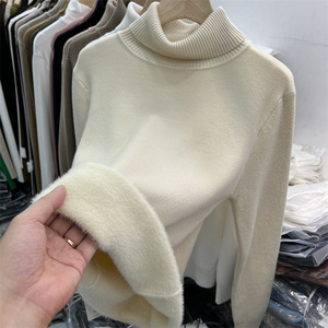 女性用ブラックタートルネックセーター、2025年秋冬新作暖かいミンクオールインワンベルベットプラスベルベット厚みのある女性用ボトリングシャツ
