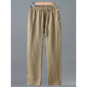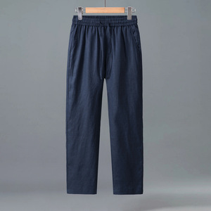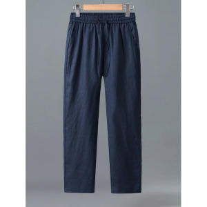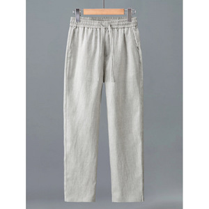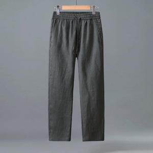 3047 リネンカジュアルビジネスパンツメンズ弾性ウエストストレート巾着ルーズ薄型通気性シンプルなメンズパンツ
