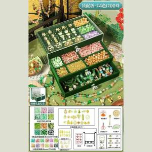 【三層緑鹿ベルベットボックス】艶出し翡翠ビーズ 24色 1200個