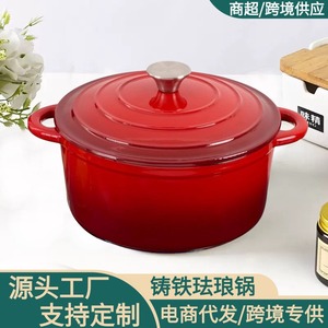 ガス電磁調理器オーブン鋳鉄ホーロースープポットシチューポットシチューポットラウンドハンドル微圧鋳鉄ポット