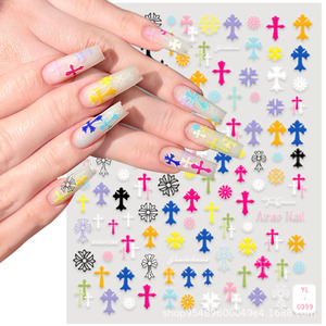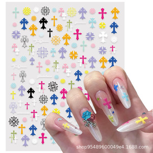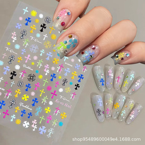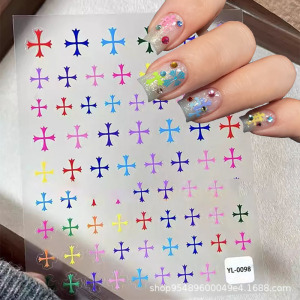 丰富元素彩色十字架克罗心辣妹指甲贴纸 糖果色薄韧 工厂批发