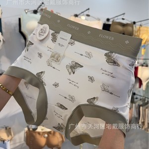 西雅图系列大码高腰塑形花纹女士内裤桑蚕丝抗菌底档三角裤#49