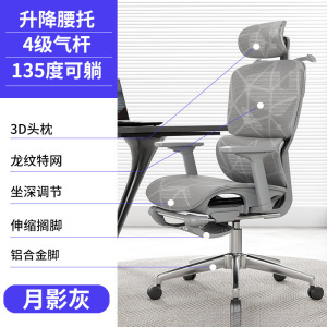 ムーンシャドーグレー - 中空シートクッション - 独立リフティングランバーサポート - フットレスト付き - 座面深さ調整