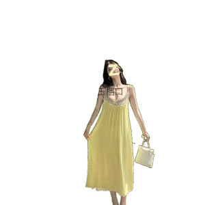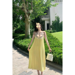 档口现货法式绝美气质重工吊带连衣裙宽松慵懒海边度假沙滩裙