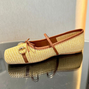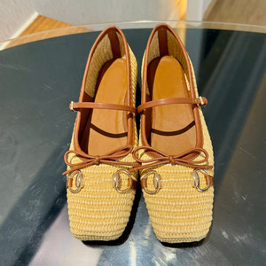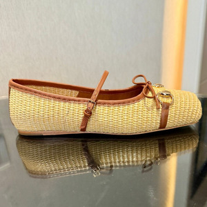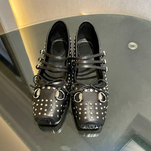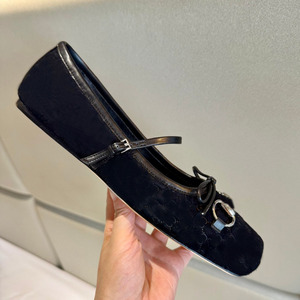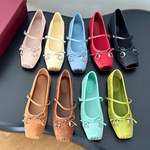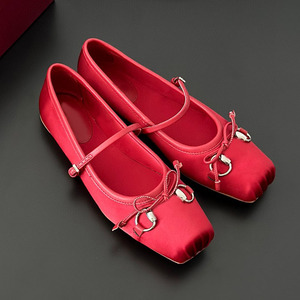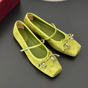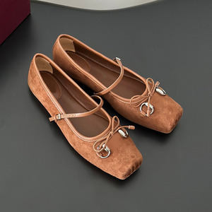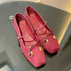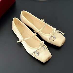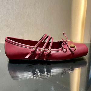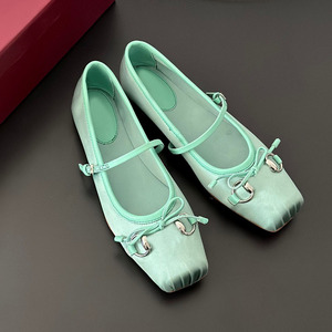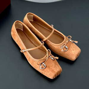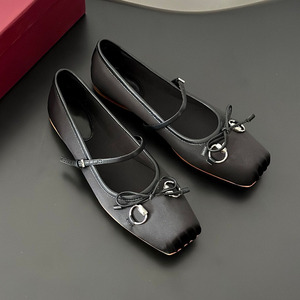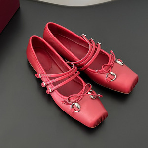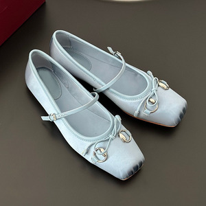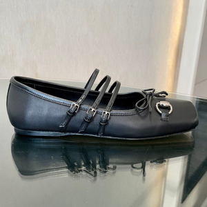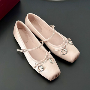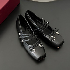 2025复古马衔扣秀场~猪鼻子蝴蝶结一字带平底芭蕾鞋女玛丽珍单鞋