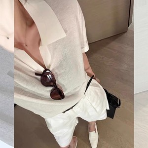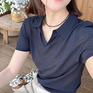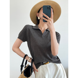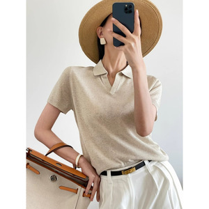 经典老钱风~Polo领高级简约T恤翻领莱赛尔亚麻短袖针织衫上衣夏女