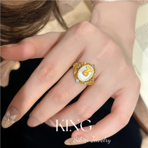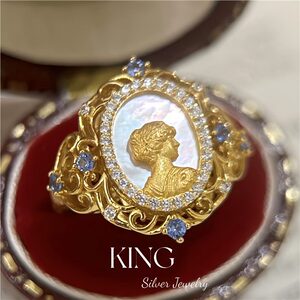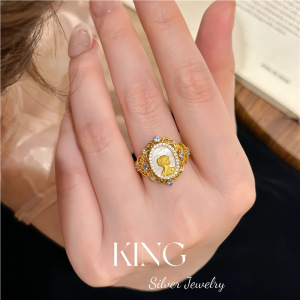 女神像 | S925银镀金白贝母文艺复兴欧式老钱风复古轻奢纯银戒指